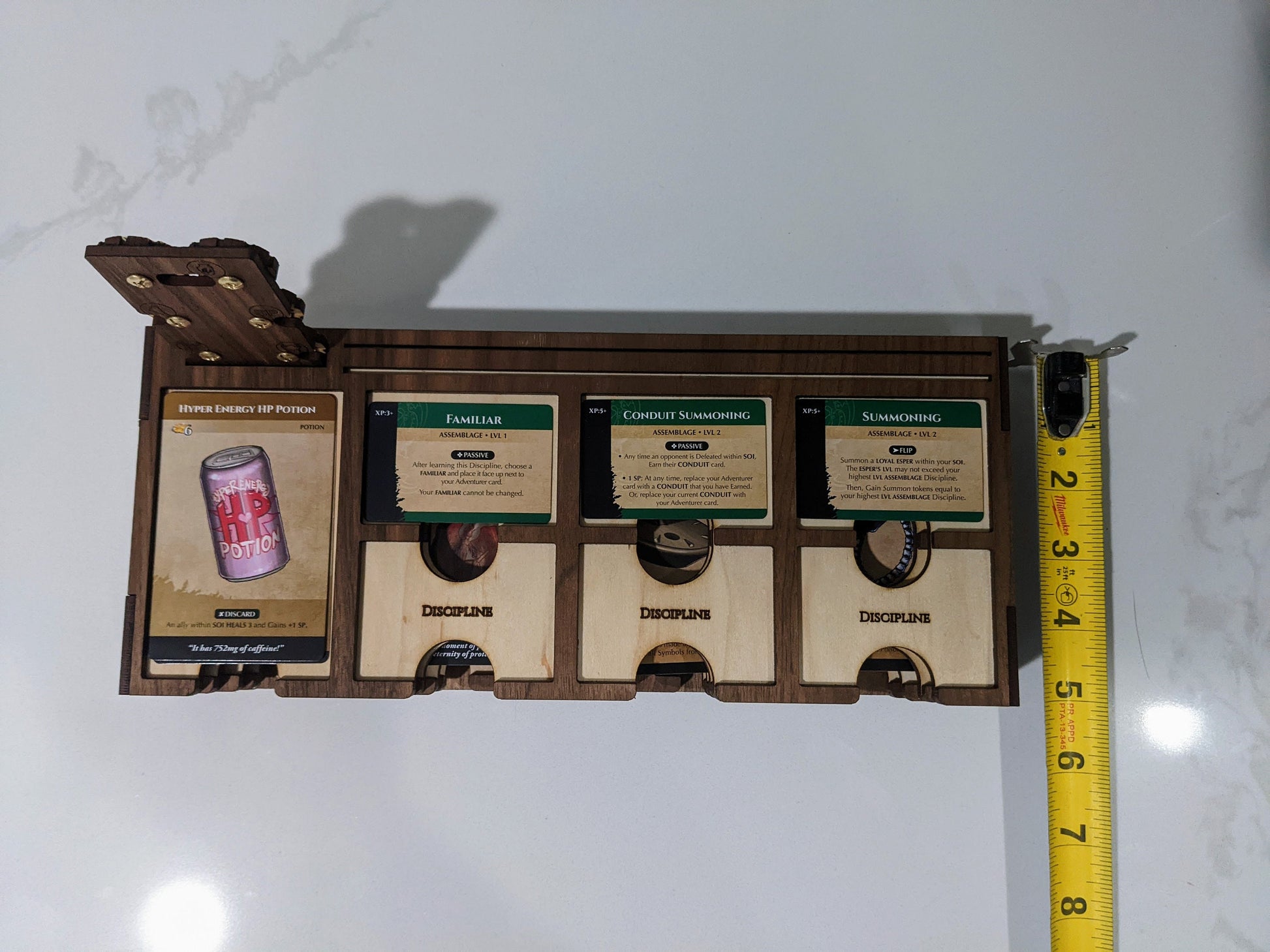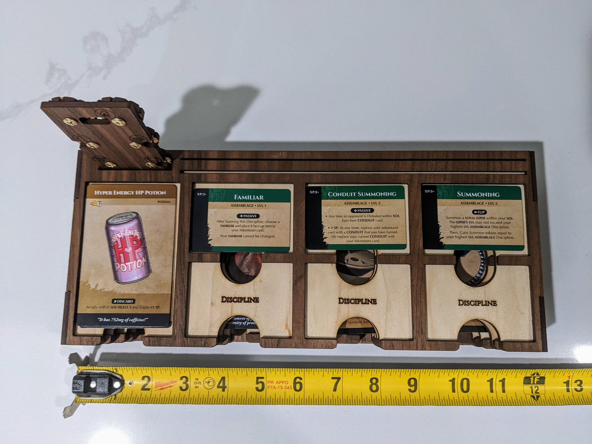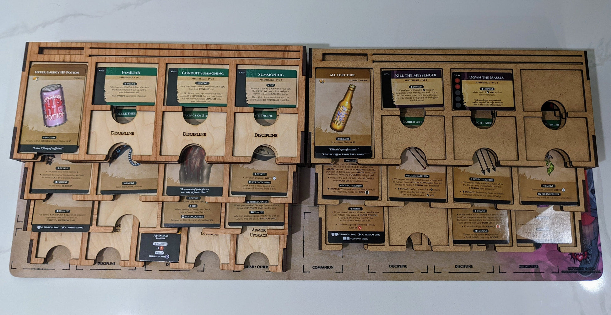These sliding character girds let you compact your playing area for each character. They are about half the size of the official playmats when in their play mode.