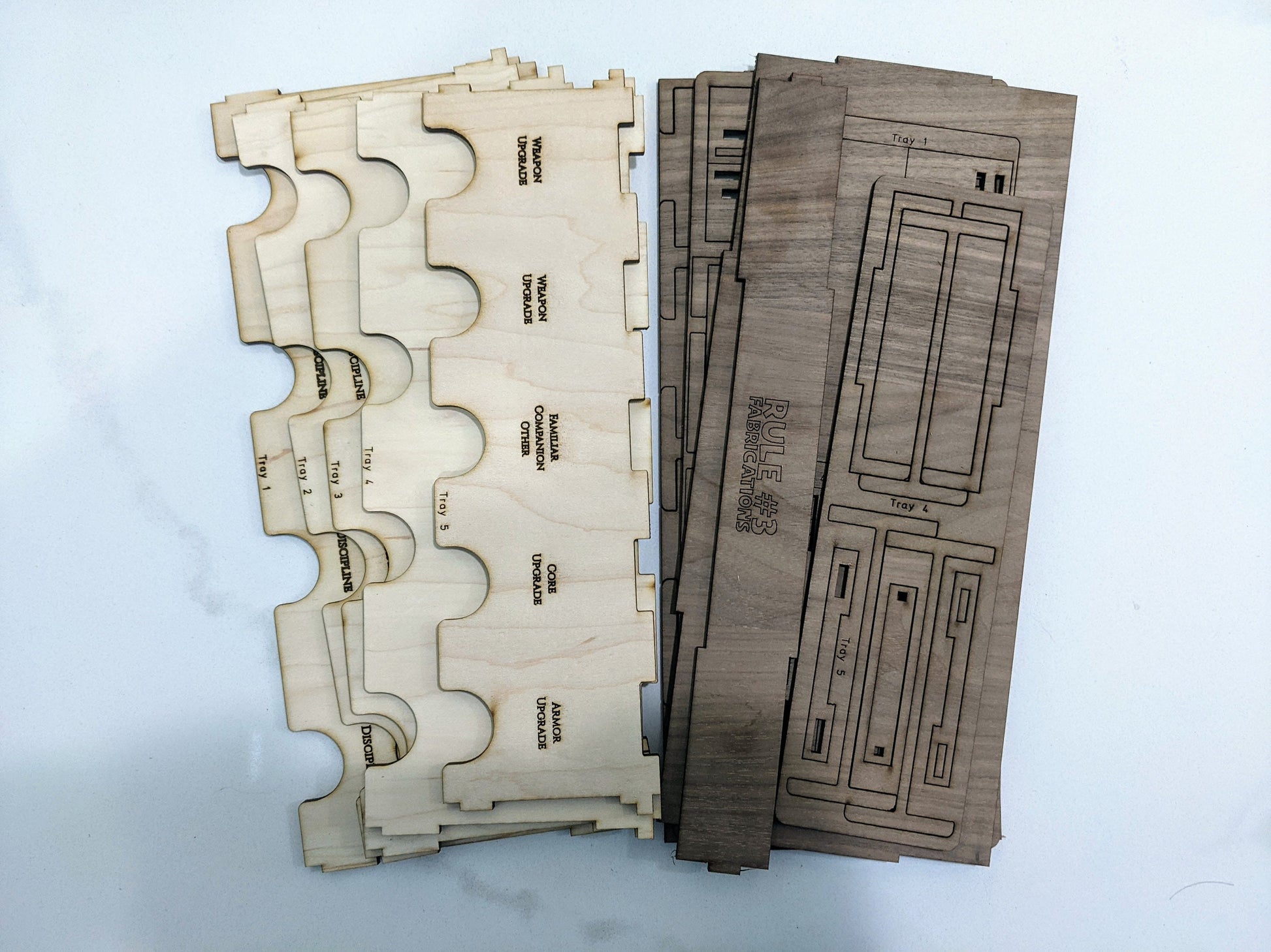 These are made with the material you selected for the grid. Please note that the Cherry and Walnut trackers are not the same sold in my other listing. These trackers will be like the Birch tracker and have no backs. If you would like solid hardwood trackers please use this listing. https://www.etsy.com/listing/959909468/middara-player-trackers-set-of-4