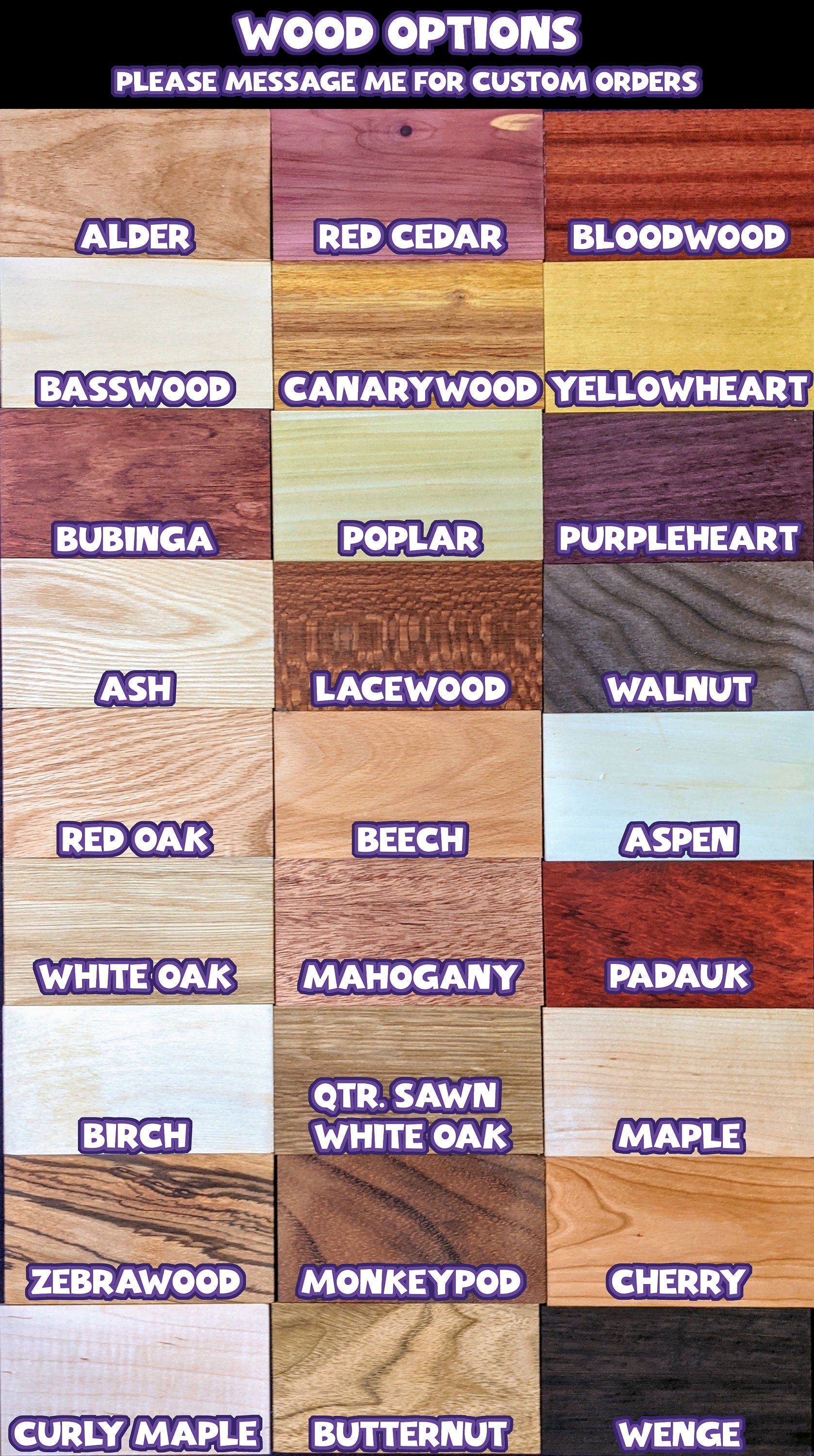 - Don't see a wood you want? Message us with what you are looking for and we can see if we can get it in.