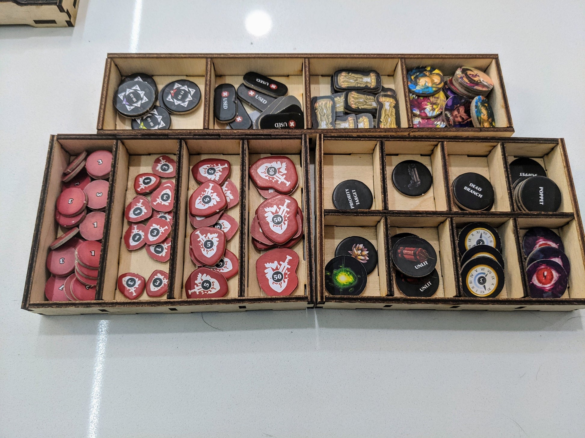 - Tiered Status Token Tray: This special tier design makes it easy to grab whatever status/effect tokens you need during gameplay.